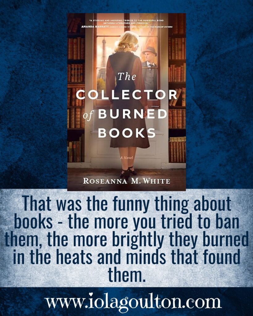 One of the things I love about great historical fiction is the power it has to shine a light on our own time. The Collector of Burned Books is an exemplary example of this principle, illustrating the importance of critical thinking, of being able to understand (and even argue) both sides of an argument in order to fully satisfy ourselves that we understand right and wrong … and how to spot the proverbial wolf in sheep’s clothing.